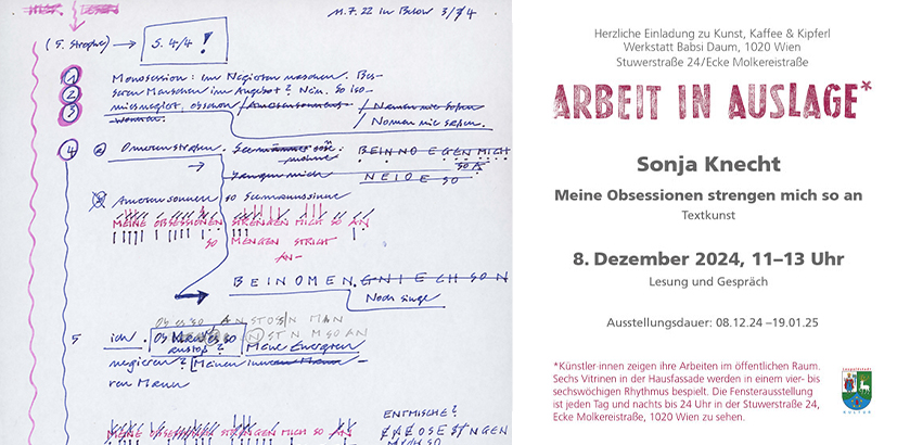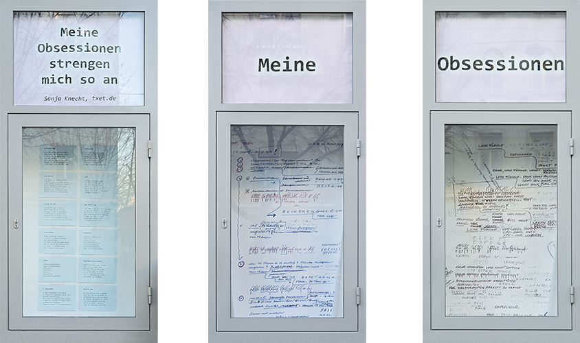 Arbeit in Auslage Nr. 101: "Meine Obsessionen strengen mich so an" von Sonja Knecht