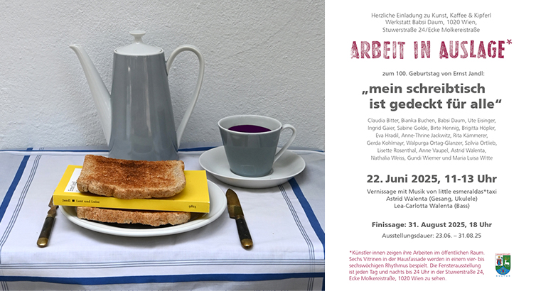 Arbeit in Auslage Nr. 104: "mein schreibtisch ist gedeckt für alle" von 20 geladenen Künstlerinnen